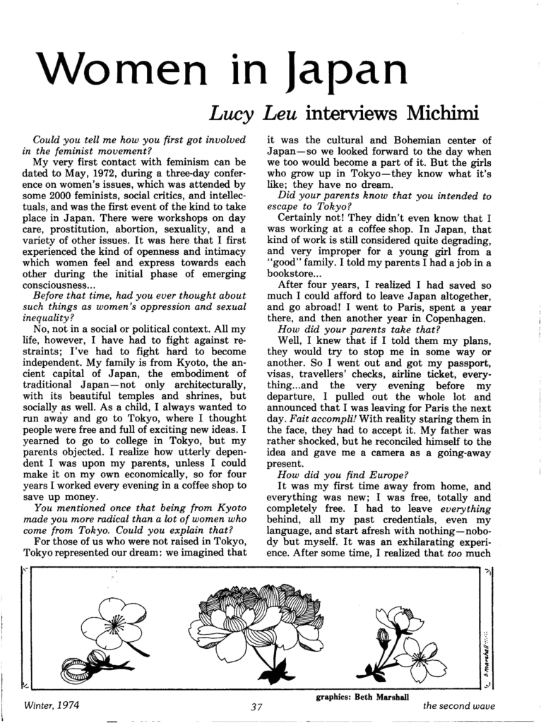 Lucy Leu interviews Michimi 1974 “Women in Japan” the second wave 3(4): 37-43